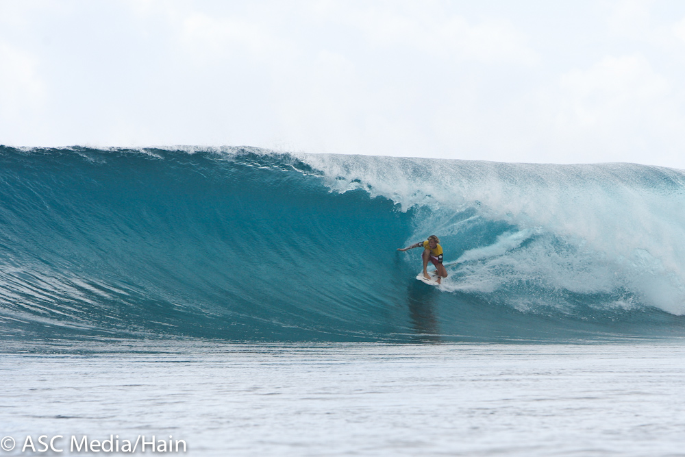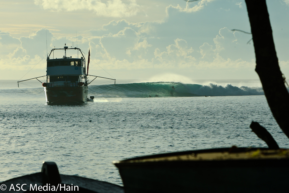 23 April 2013, Katiet-Mentawai Islands: In what ASC Judge Billy Hangan described as a “perfect day at the office”, the Asian Surfing Championship’s top 16 surfers and the 8 international invitees were treated to a day full of barreling 4-5 foot Lance’s Right perfection to start off the Mentawai Pro presented by Rip Curl today.